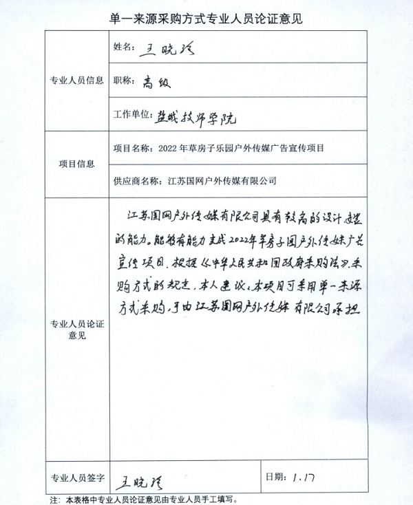 采用單一來源采購方式的原因及說明:本項目擬在鹽城金鷹國際購物中心有限公司、鹽城中南世紀城房地產(chǎn)投資有限公司中南購物中心、上海寶龍商業(yè)地產(chǎn)管理有限公司鹽城分公司停車場投放燈箱廣告,而江蘇國網(wǎng)戶外傳媒有限公司為其廣告燈箱獨家授權(quán)經(jīng)營供應(yīng)商。根據(jù)《中華人民共和國政府采購法》第三十一條第一項“只能從唯一供應(yīng)商處采購的”規(guī)定,本項目擬采用單一來源采購,由江蘇國網(wǎng)戶外傳媒有限公司作為單一來源供應(yīng)商承擔。