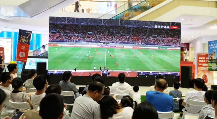 6月28日,鹽都萬(wàn)達(dá)廣場(chǎng)的一樓中庭化作沸騰的綠茵戰(zhàn)場(chǎng),300平方米的超清巨幕上清晰展現(xiàn)球員們的每一次拼搶、每一腳射門,現(xiàn)場(chǎng)座無(wú)虛席,球迷們目不轉(zhuǎn)睛緊盯賽況。隨著比賽進(jìn)入白熱化,助威聲、歡呼聲如浪潮翻涌,沉浸式觀賽體驗(yàn)將賽場(chǎng)的熱血與激情完美復(fù)刻。